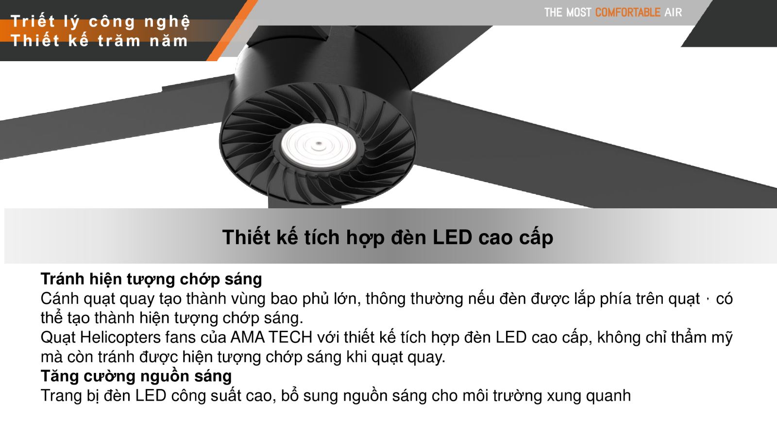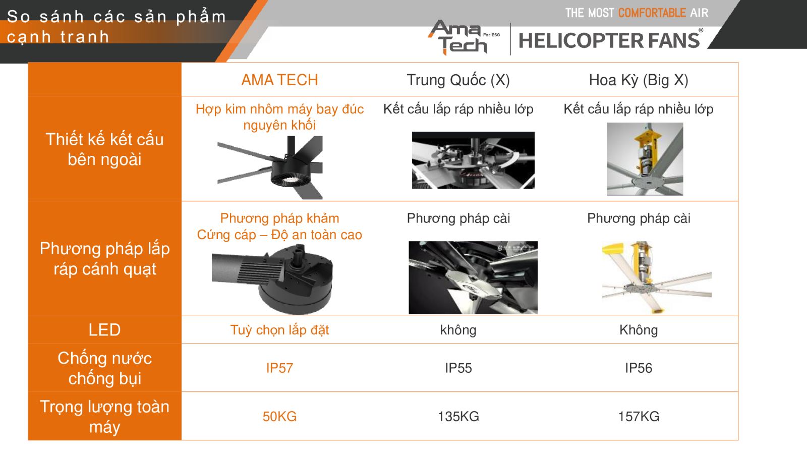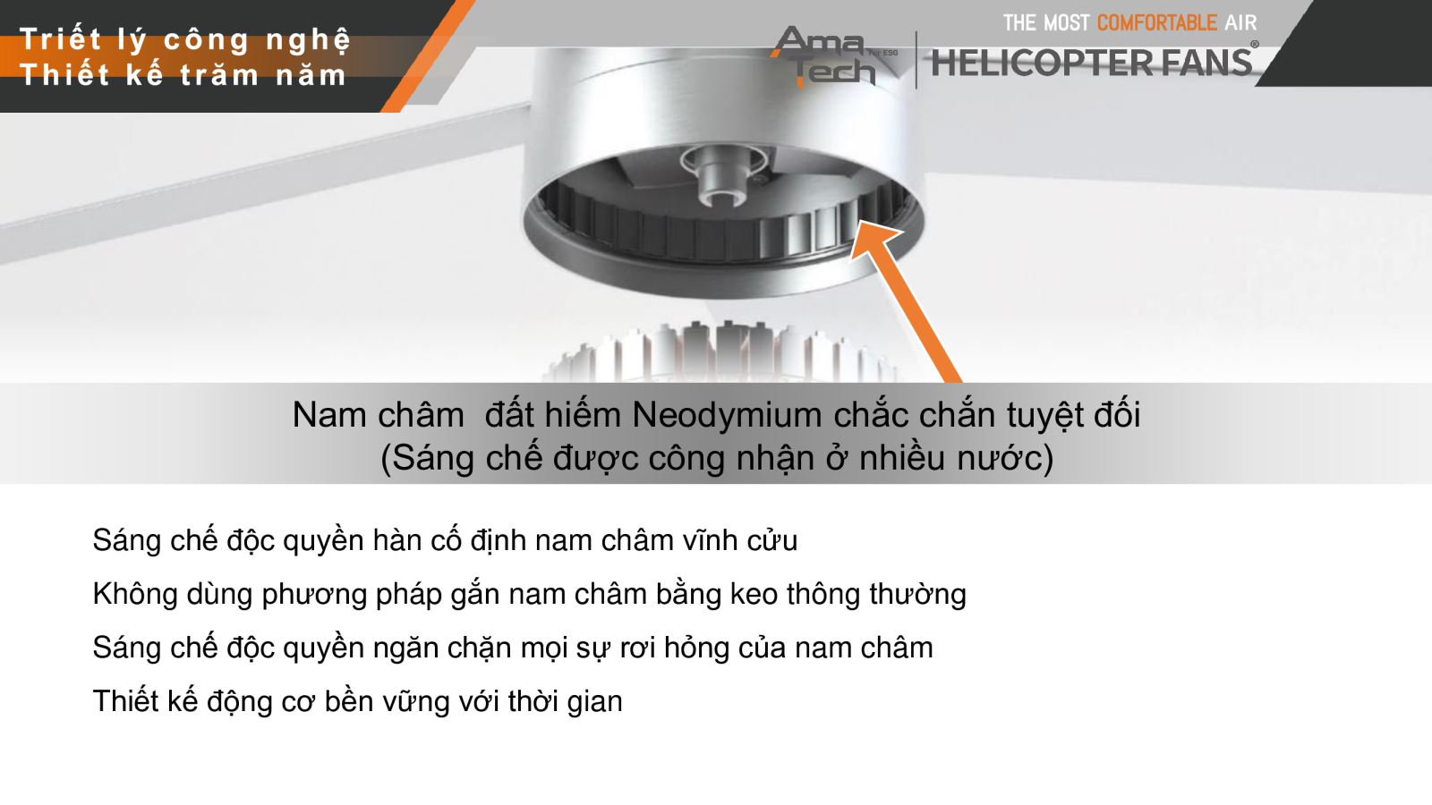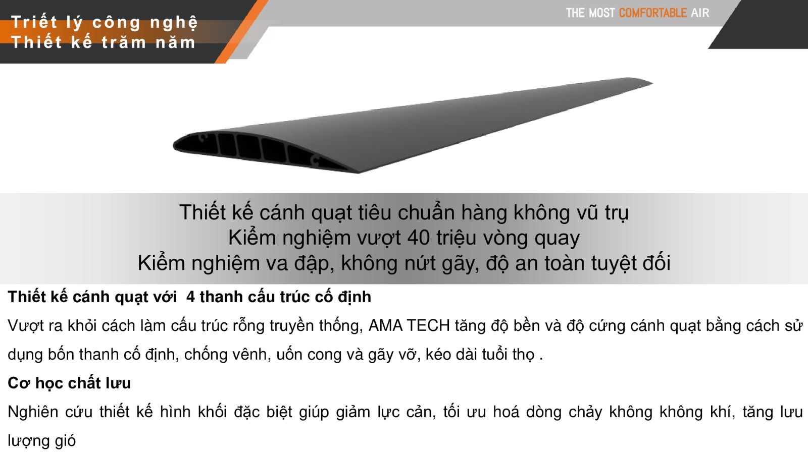 Vượt ra khỏi cách làm cấu trúc rỗng truyền thống, AMA TECH tăng độ bền và độ cứng cánh quạt bằng cách sử dụng bốn thanh cố định, chống vênh, uốn cong và gãy vỡ, kéo dài tuổi thọ .
