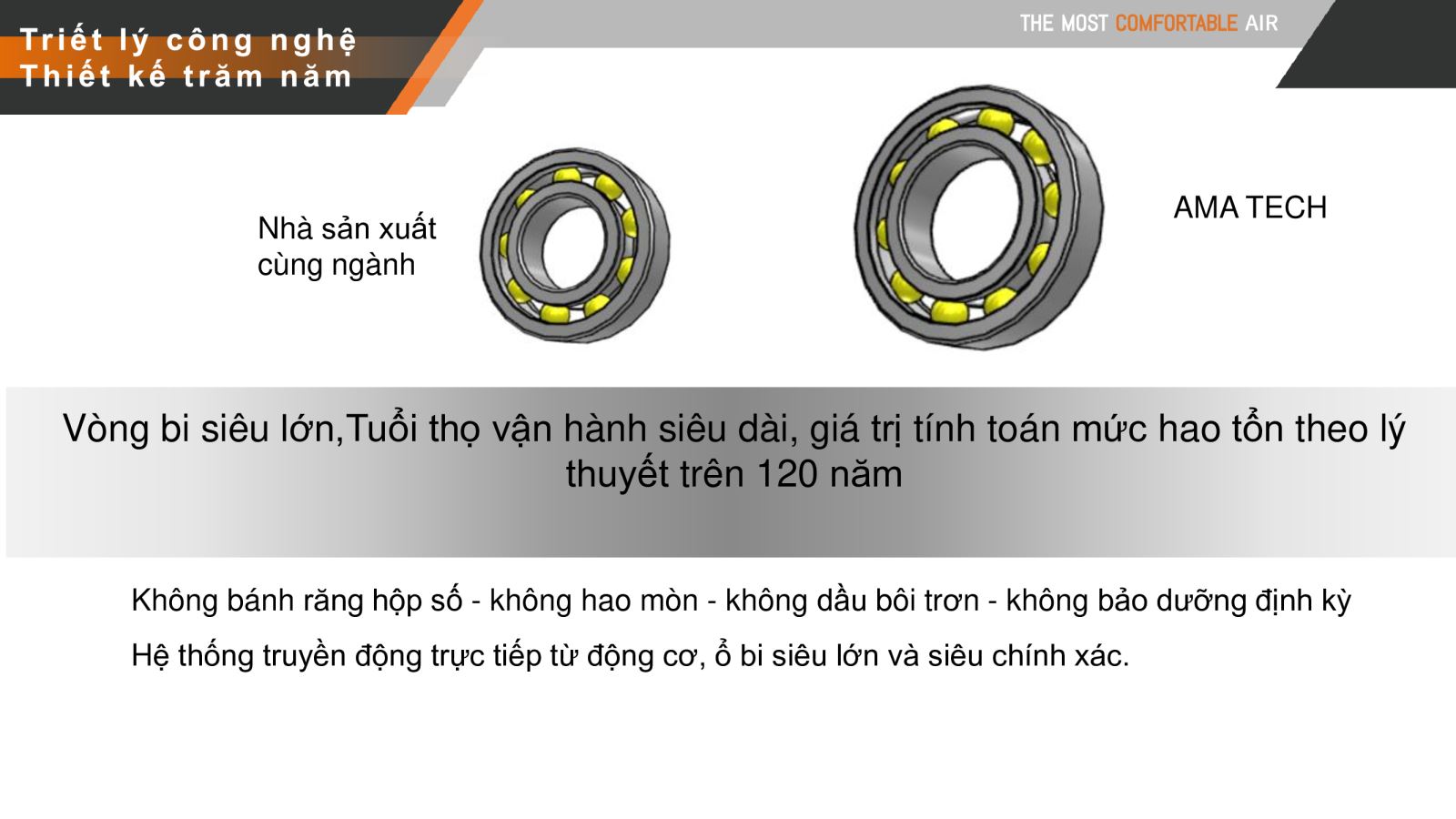 Vòng bi siêu lớn, tuổi thọ vận hành siêu dài, giá trị tính toán mức hao tổn theo lý thuyết trên 120 năm