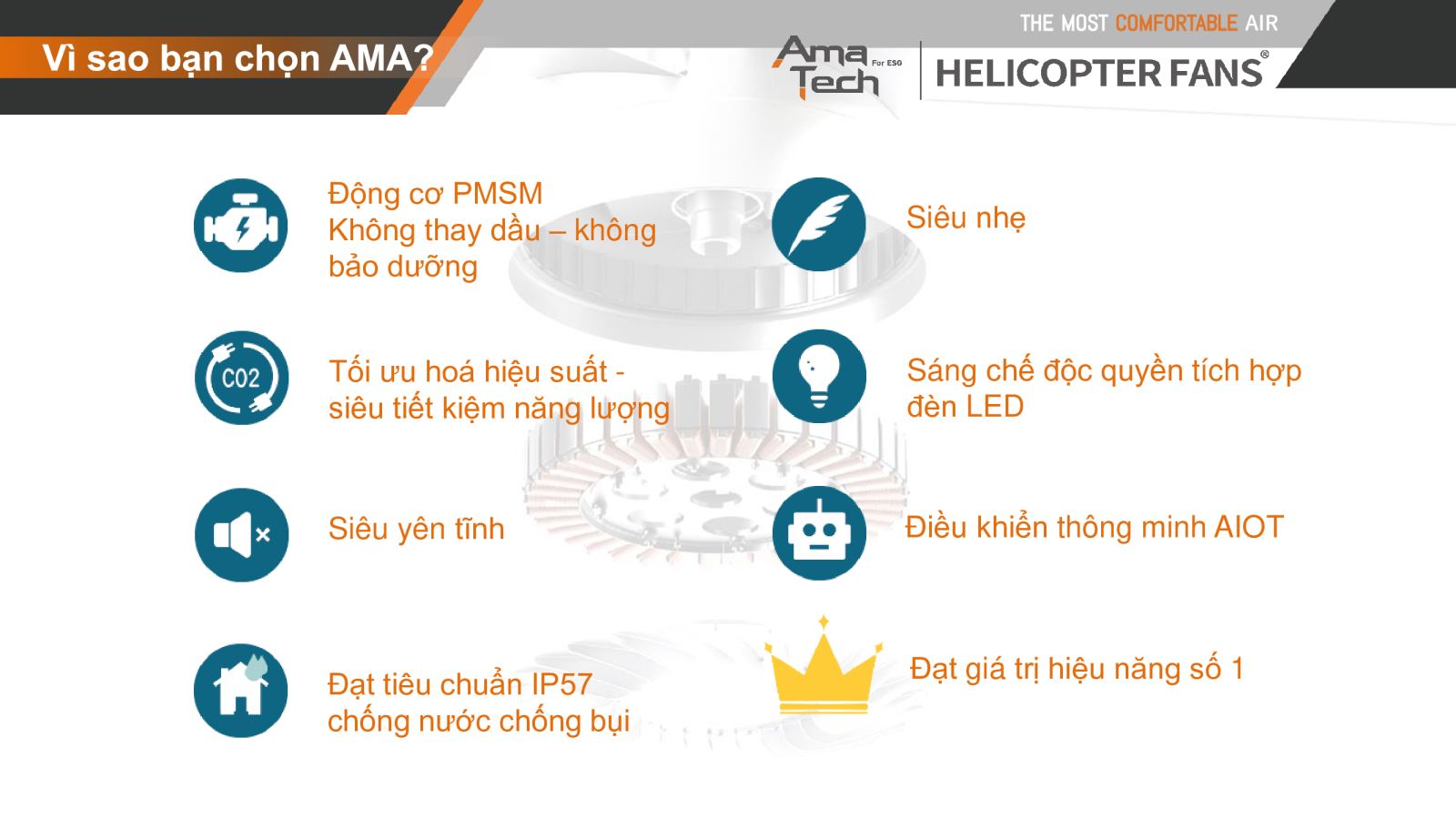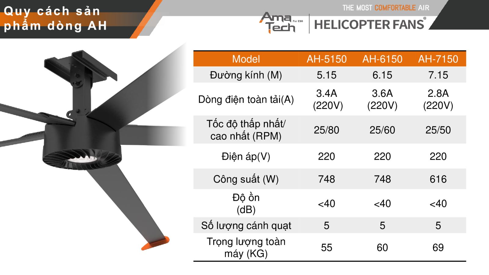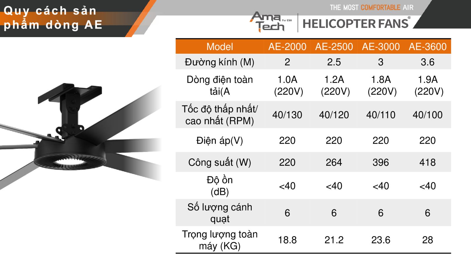 Ama Tech Quạt trần công nghiệp HVLS là ( High Volume - Low Speed ) chỉ chung cho dòng quạt cánh dài, quay tốc độ chậm, nhưng khả năng đảo khí lớn, dòng quạt cánh dài- động cơ PMSM công suất lớn, thiết kế đẹp, tinh gọn, độ ồn thấp.
