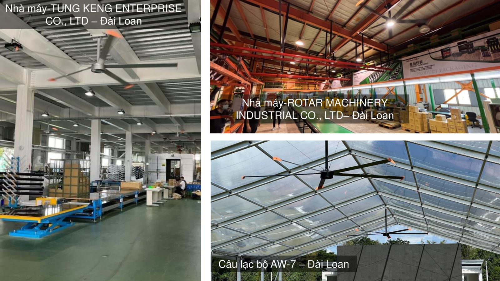 Giải pháp tối ưu tạo gió, làm mát cho không gian rộng lớn như nhà máy, nhà xưởng, trung tâm thương mại, khách sạn, quán cà phê.